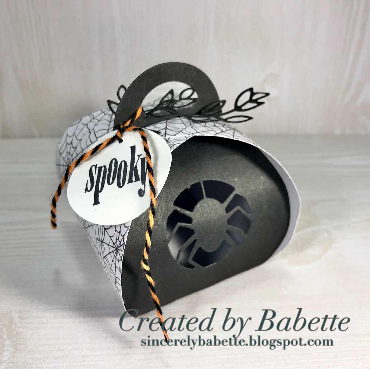 I used black paper and spider pattern paper to create this festive little gift.