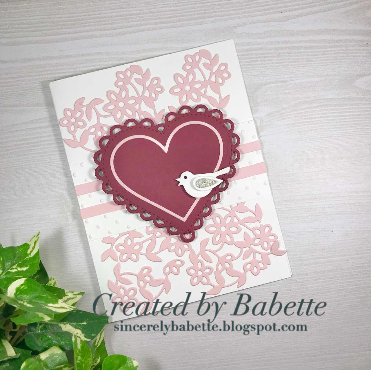 I used the Many Hearts dies in the new mini catalog by Stampin’ Up!, to design this card. It’s such a pretty die set and was a must have for me.