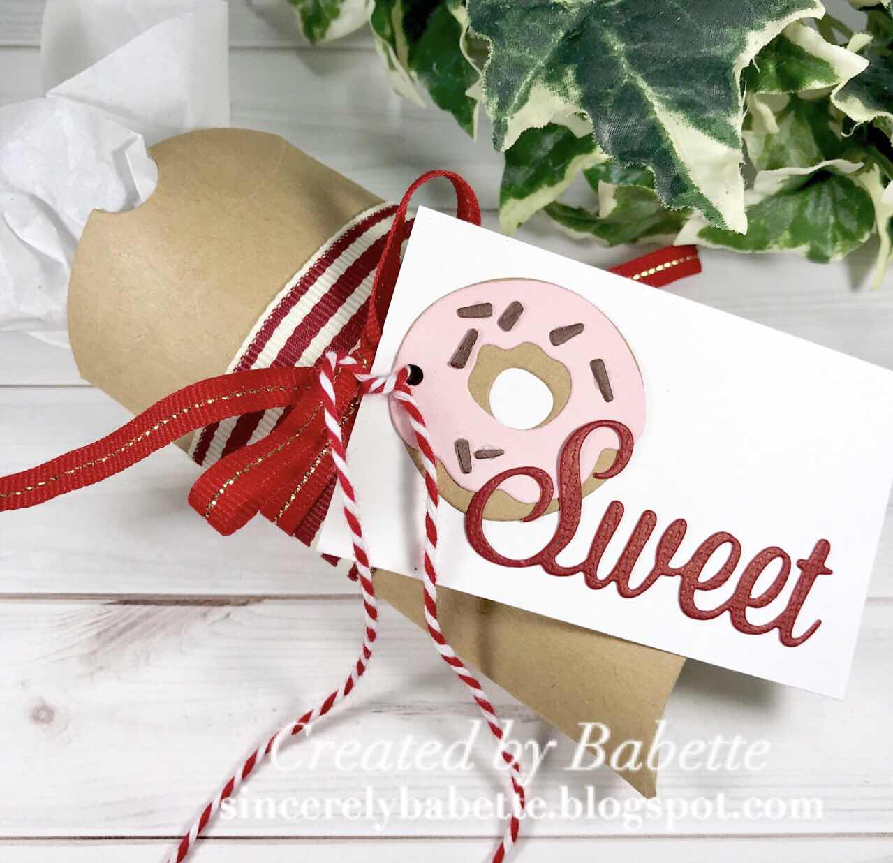 I think a gift card for donuts is the perfect gift to tuck inside this “sweet” pillow box! 😋 The tag was created with the Echo Park Paper Co., Sweet Doughnut Die.